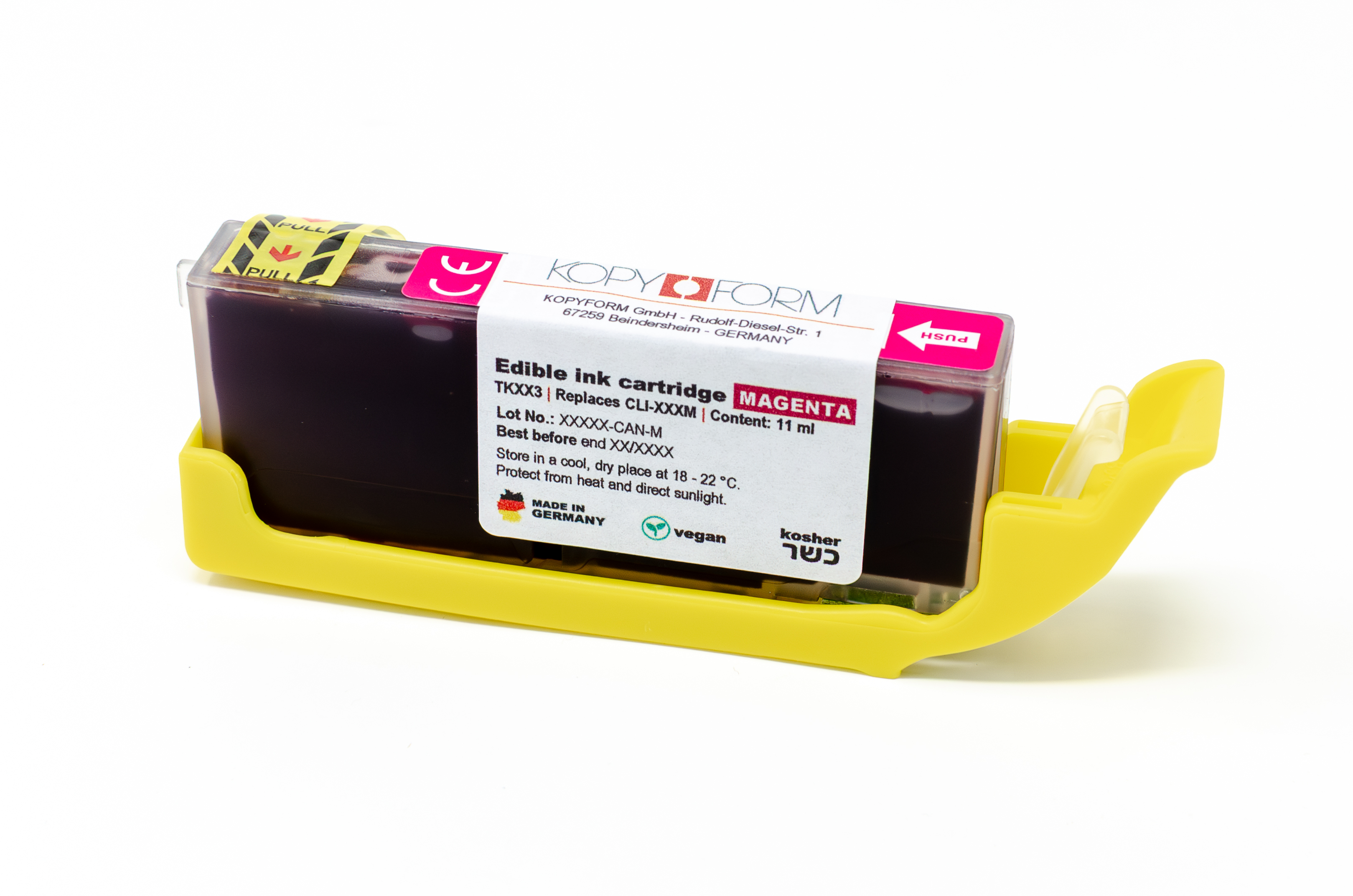 Die Patronen mit Lebensmitteltinte von KOPYFORM sind ideal für Bäckereien, Konditoreien und Catering-Unternehmen und bieten Qualität, Sicherheit und beeindruckende Ergebnisse für sämtliche Anforderungen im Lebensmitteldruck.